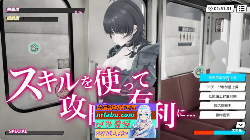 通过多次痴汉行为增进亲密度后,将解锁电车内的插入玩法。通过鼠标拖拽实现从轻柔爱抚到疯狂抽插的直观操作。